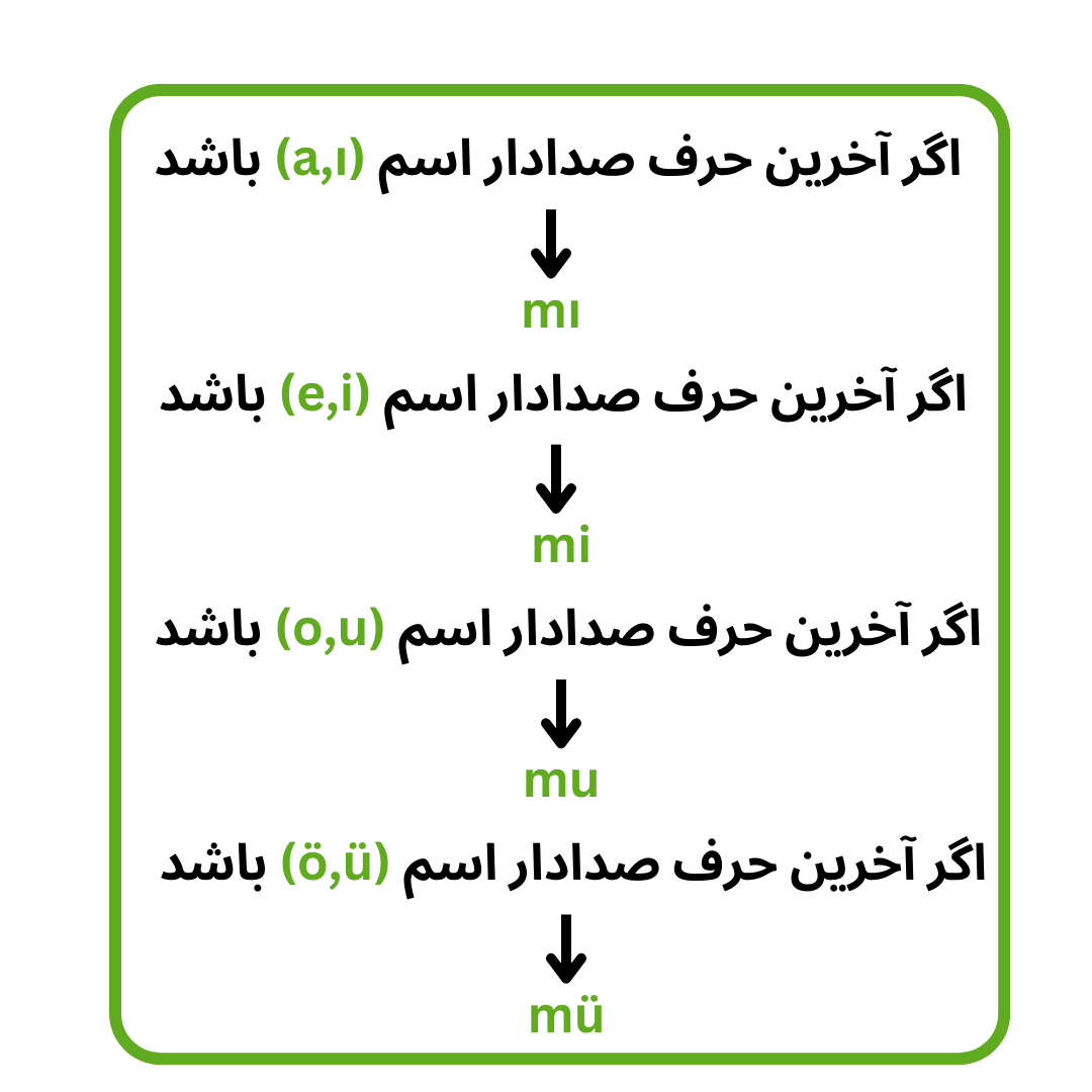 پسوند پرسشی در ترکی بر اساس هماهنگی واکهای (ünlü uyumu) تغییر میکنه: